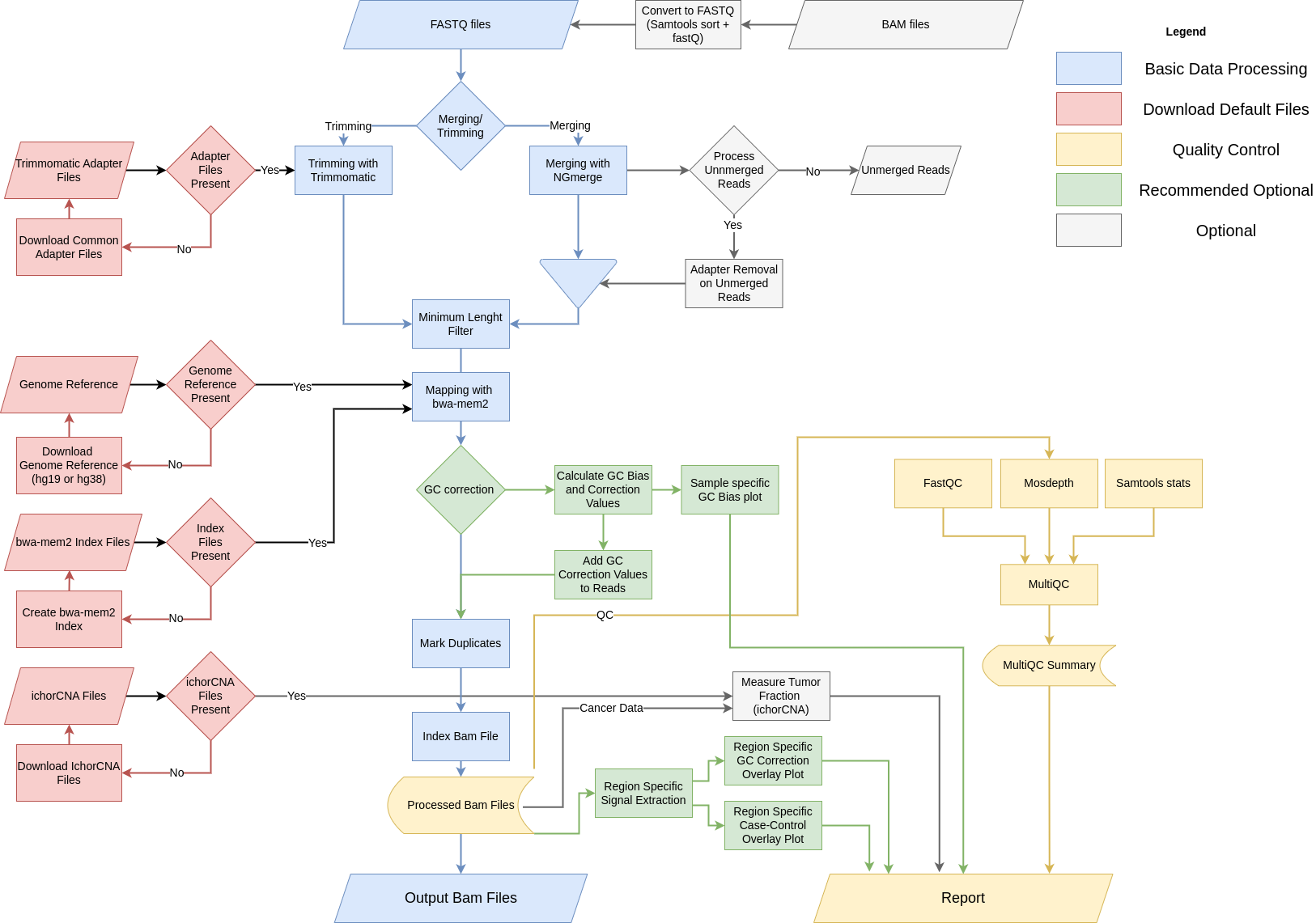 cfDNA UniFlow is a unified, standardized, and ready-to-use workflow for processing whole genome sequencing (WGS) cfDNA samples from liquid biopsies. It includes essential steps for pre-processing raw cfDNA samples, quality control and reporting. Additionally, several optional utility functions like GC bias correction and estimation of copy number state are included. Finally, we provide specialized methods for extracting coverage derived signals and visualizations comparing cases and controls.