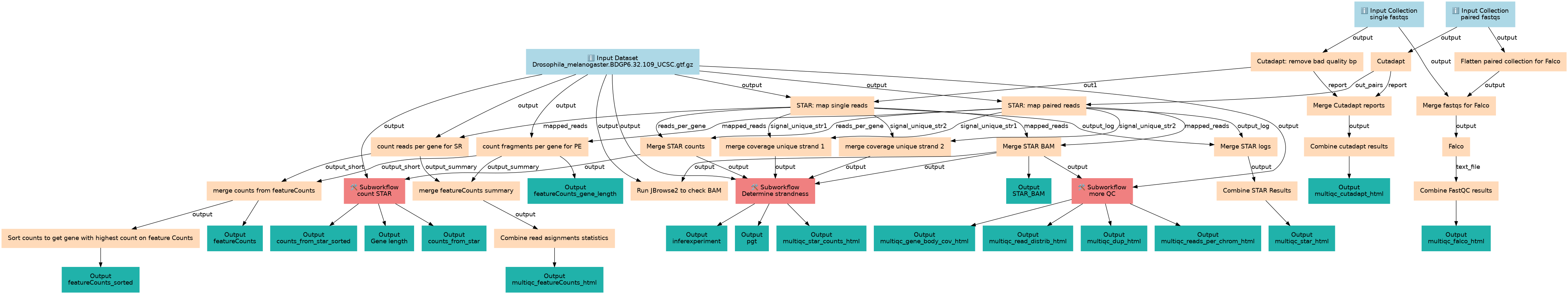 | 9 | STAR: map paired reads | toolshed.g2.bx.psu.edu/repos/iuc/rgrnastar/rna_star/2.7.11b+galaxy0 |