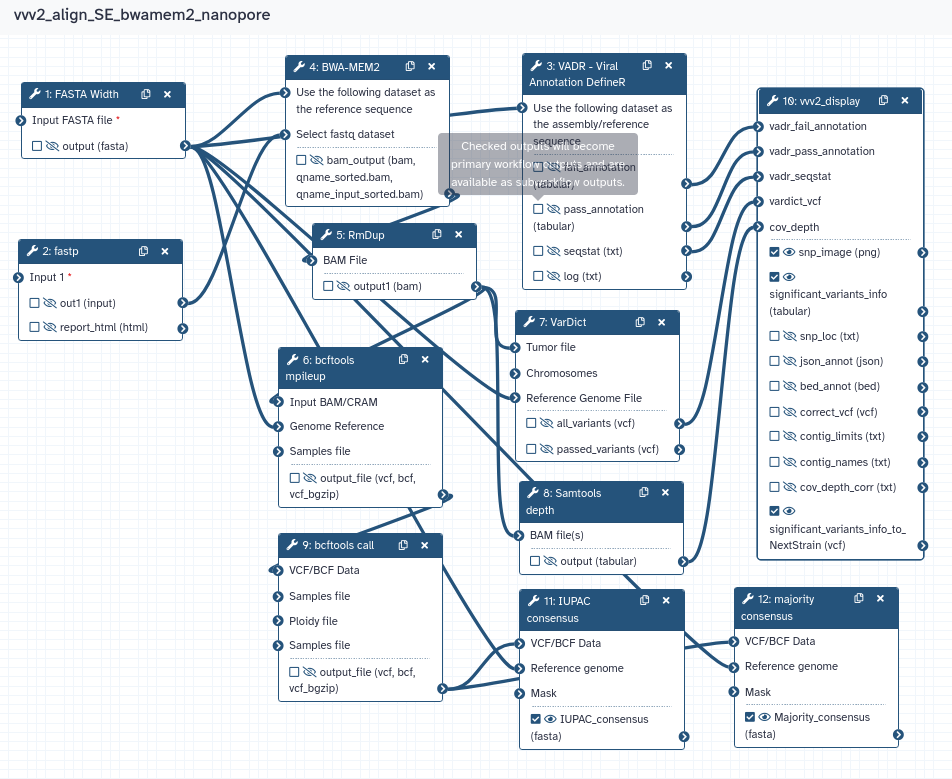 | 11 | majority consensus | Gives consensus with major nucleotides only toolshed.g2.bx.psu.edu/repos/iuc/bcftools_consensus/bcftools_consensus/1.15.1+galaxy3 |